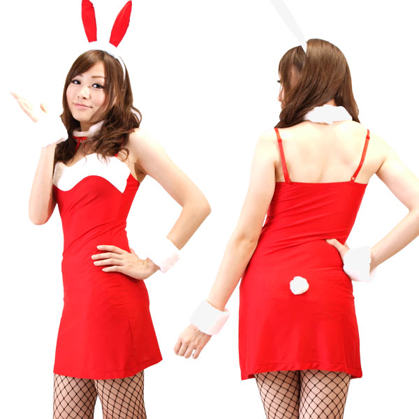 色鮮やかな赤×白のカラーが、女の子らしくてセクシーな印象のバニーガールのコスチューム。胸元やシッポ、襟…さらにはバニーの耳やカフスに至るまで、白の部分は全てモコモコのファーでデザインされたこだわりの逸品! |