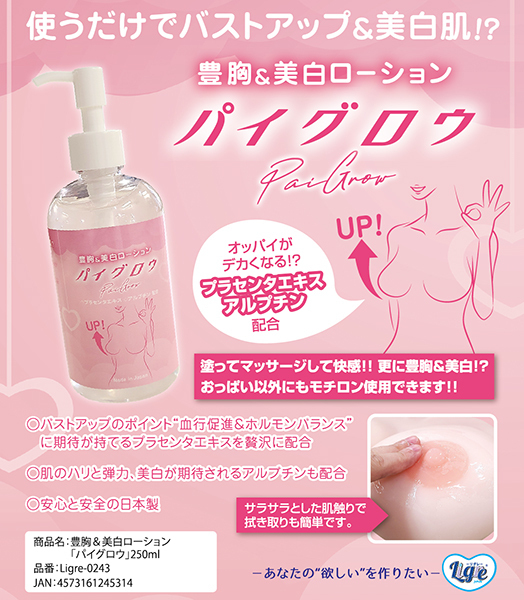 HOME> ラブローション > ローション・潤滑ジェル > 豊胸&美白ローション パイグロウ 250ml