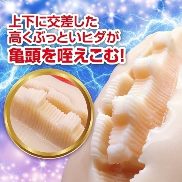 超極太の山ヒダが上下連続で交差する!山ヒダオナホ「クロッシングバレイ」が登場です!ヒダ山脈のように高くぶっといヒダが亀頭に直撃する!しかも超細かいヒダがそれぞれの山に搭載されており、ゾリゾリ感を味わいながらも隙間なく積み上げられた上下に交差する山ヒダで、亀頭が完全に咥え込まれる!ガッチャンコだ!350gの肉厚で内部の隙間がほどんどない程の重厚感!ボコッボコッっとなりながらも亀頭が舐めまわされるような快感!これはかつてない造形だ!快感だ!この奇跡の造形の前では我慢などできまい!山に任せて心行くまでピストン運動!そして即暴発! |