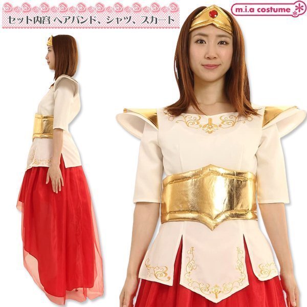 仕様:男女兼用サイズ:身長〜180cm・B〜101cm・W〜88cm・H〜99cm・着丈(上衣63cm・スカート105cm)・袖丈30cm) セット内容:上衣(背中心ファスナー)、スカート(ウエストゴム)、ヘアバンド 素材:ポリエステル100%