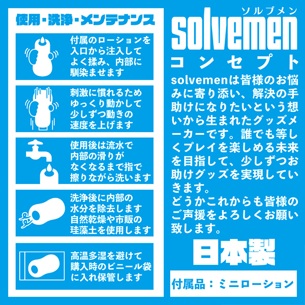 開放感がありマッタリとしたロングな快感が味わえる非貫通型オナホ「とにかくひろい」。普段からゆったりとした余裕のある内部構造を待ち望んでいた方にとっての嬉しい仕様♪柔らかめの素材で無理なく長時間楽しめるように工夫されていて、ねじれヒダと内部の広さ、焦らしが織りなすソルブメンのコンセプト型ホールなら毎日楽しみながら新しい扉を開く事ができる事でしょう。素材は安心安全の日本製!繰り返し何度でもご使用頂けます♪ |