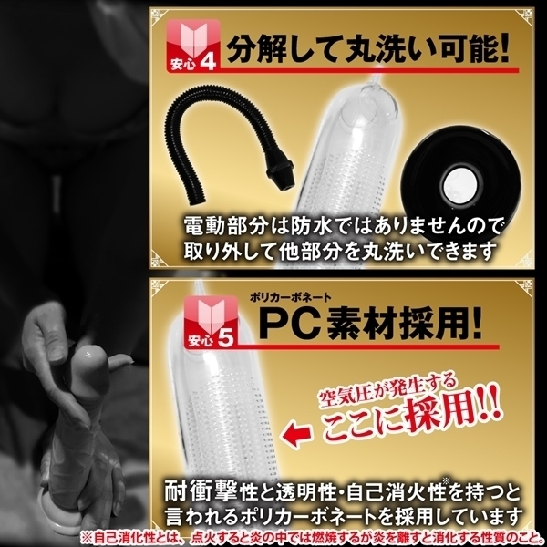 手軽に使用できる自動吸引ポンプです♪シンプルなオンオフ操作で、どなたでも簡単にお使いいただけます!乾電池で動作するため、コードレスで持ち運びもラクラク♪使い方はボタンを押すだけ!ゆっくりと吸引し、しっかりサポートします♪本体は耐衝撃性があると言われるポリカーボネートを採用!シリンジ部分には柔軟性のあるエラストマー素材を使用し、快適なフィット感を実現しました♪分解して丸洗いができるので、いつでも清潔に保てます!必要に応じて吸引を解除できるので、安心してご使用いただけます♪サイズやフィット感が気になる方にもおすすめ!無理なく使える設計で、どなたでも安心♪ぜひ、この便利な自動吸引ポンプをお試しください! |