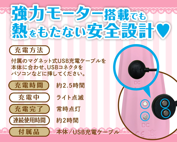 スレンダー美人なグラドルAV女優「吉高寧々」も身悶えたキュートなピンクカラーのUSB充電式電マ。出っ張った先端がピンポイント刺激に対応!クリや乳首を責めると同時に周囲までしっかり振動を伝えます。素材には柔らかなシリコンを採用、振動は5種類のパターンと3段階強弱を搭載!超強力モーターが生み出す快感を貴方も体験しよう♪完全防水、2.5時間充電で2時間連続稼働 |
