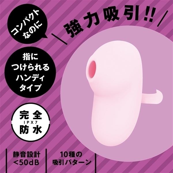 史上最強吸引ローター!指につけられるハンディタイプの吸引ローター!コンパクトなのにめっちゃ強力!優しいチュパチュパから激しいジュポジュポまで豊富な10種の吸引パターン!指につけられて手にフィットする形状だから使い心地もバツグン!完全防水だから使用後のお手入れもラクラクです!欲しいトコロ全部入ってる史上最強吸引ローターで絶対クリイキ宣言!敏感な部分に直接使うものだから押し当てても痛くない柔らかマット素材を使用しました。吸引:10パターン&完全防水IPX7等級&静音設計<50dB&充電用USBケーブル付属。●カラー:ピンク |