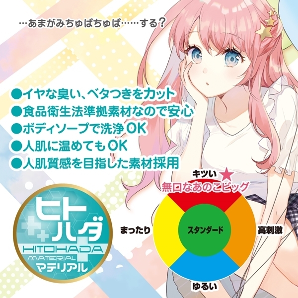 高刺激で好評の「無口なあのこ」が大きくなって新登場。上下に設置されたイボ突起がサオを軽く甘噛み、奥の子宮口でチューっと吸い付き刺激♪素材には高品質で耐久性に優れたヒトハダマテリアルを採用!程よい弾力でもっちり肉厚ボディの気持ちいい非貫通オナホです。 |