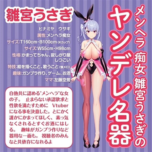 人気VTuberでメンヘラ痴女でもある雛宮うさぎのヤンデレ名器をイメージした非貫通型オナホ「雛宮メンタルクリニック 雛宮うさぎ」です。マッタリゆるふわな癒し系の名器で敏感部分に絡みつく柔らかな膣壁と膣内の空間が柔らかく包み込む感じがたまらない♪いやらしい膣ヒダがむっちりと貴方に抱きつき離さない!奥にいくほど押し寄せてくる濃厚な肉厚感はユルふわで、まるで3LDKのような膣内が特徴的♪これはもうみんなで共依存するしかない!うさぎのことだけ考えてシコってね♪ローション付き●メーカー型番:TMT-1619 |