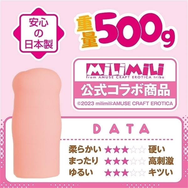 日本製。milimili:AMUSE CRAFT EROTICA公式コラボ商品。『おしかけJ●彼女!エチエチプニプニオナホDX』を再現!!生きた肉壁のように肉棒に絡みつき搾り取る、スムーズで滑らかな挿入感。肉棒を包み込む柔らかい肉壁、揉みこまれ締め付けるような弾力性。原画:風瑛なづき●メーカー型番:TMT-1717 |