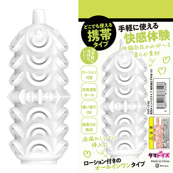 どこでも使える携帯タイプ。プリプリ高弾力タイプ、ローション付きのオールインワンタイプ、肉厚な柔らかシリコン使用で手軽に使える快感体験。伸縮自在ののび〜る柔らか素材、液漏れしにくい挿入口。 セット内容:非貫通式ホール、ローション●メーカー型番:TMT-1742 |