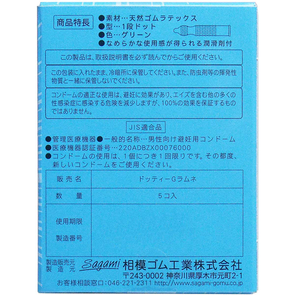HOME> コンドーム・避妊具 > 匂い・香り付き > サガミ つぶつぶラムネ (5個入り)