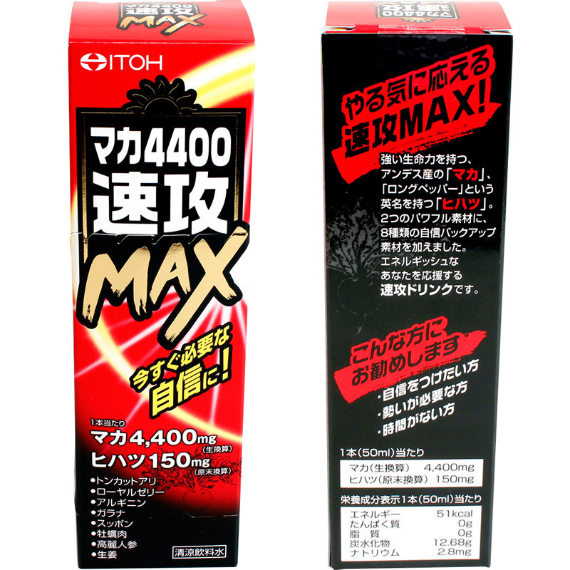「マカ」と「ヒハツ」という2つのパワフル素材を使った速攻ドリンク。男性以外にも家事・育児・仕事を頑張りたい女性の方にもどうぞ。