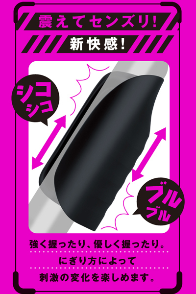 擦って震えて新感覚!包み込んで刺激する電動オナホ。滑らかな手触りとプニッと質感が特徴の高品質シリコンを採用!内側にはイボとウェーブ状ヒダを設置し、フィットしながらダブルで刺激♪かける圧力によって快感の変化が楽しめる!9種類の強力振動が味わえるローター搭載、丸洗い可能なIPX7等級の完全防水製。長時間でも疲れにくい超軽量94g |