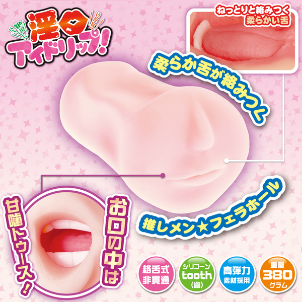 お口の中は甘噛トゥース!淫口アイドリップは童顔フェイスのフェラホール(非貫通)です。ちいさなお口を開けば「シリコーン製のtooth(歯)」がお出迎え!貴方を優しく甘噛みしてくれます。そして、口内には長さ5cmの「柔らか舌」を配置!ねっとりと絡み付く感触をお楽しみいただけます。<淫口アイドリップ>はイマラチオなオーラルバキュームを体験できる新感覚のフェラホールです。