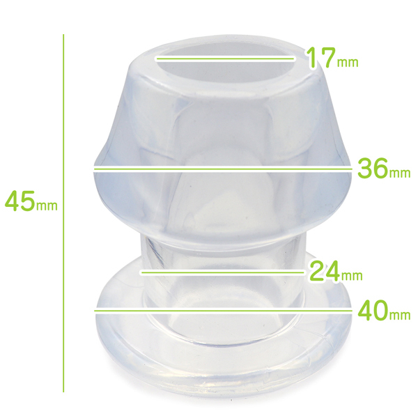クリアカラーで内部丸見え!内部穴360度見渡せる極上の光景幅広いプレーが可能な多用途プラグ柔軟性と形状保持力を備えた透明色の拡張アイテムです。拡張プレイだけでなく観賞や洗浄、ローション注入等、幅広く活用できます。5サイズ展開はレディース、メンズ、初心者、上級者と使い分けが可能。ご自分の判断でご利用ください。素材:TPRサイズ:XSサイズ全長:45mm 最大幅:36mm(底部を除く)空洞内径:17mm |