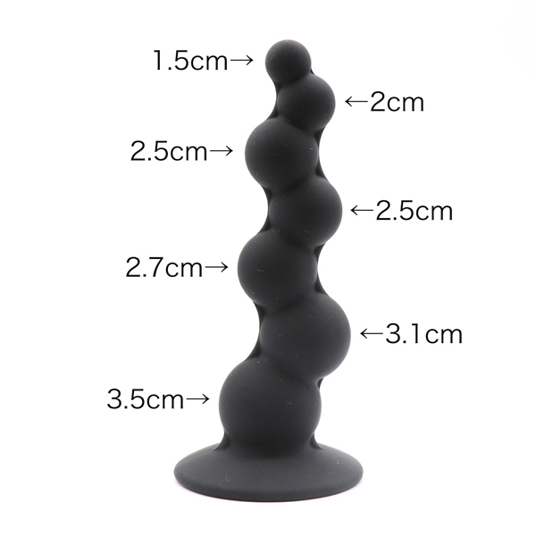ビーズとして、ディルドとして、プラグとして!アナルで色々な刺激を感じられ葡萄のようなデザインが特徴の異型アナルディルドです!底部には吸盤もついているので、ゴツゴツとした挿れ心地を騎乗位スタイルや後背位スタイルでも楽しめちゃう♪段々と大きくなるビーズは小さく、細身ながら男性でも女性でも挿れ心地を堪能できます。さらさらでニオイやベタ付きのないシリコン素材を採用。[サイズ]15cm×6.5cm[ビーズサイズ]1.5cm、2cm、2.5cm、2.5cm、2.7cm、3.1cm、3.5cm |