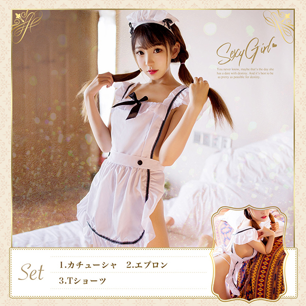 仕様:フリーサイズ セット内容:カチューシャ、エプロン、Tバックショーツ