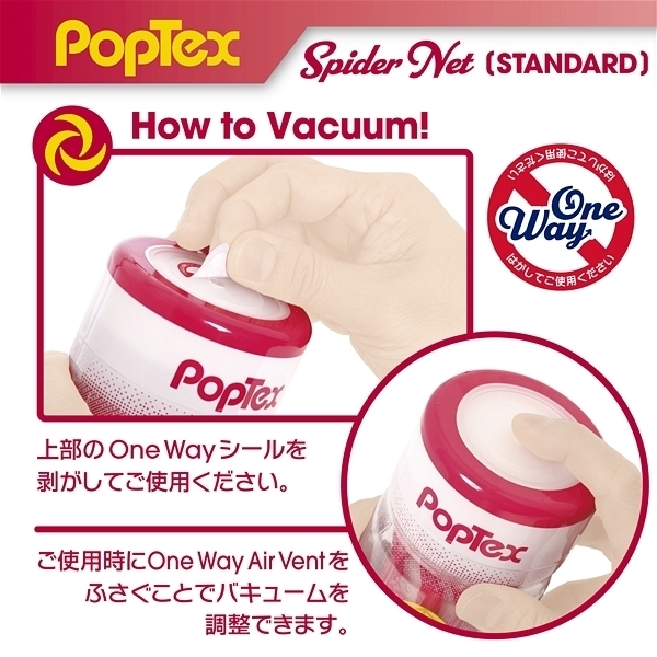 ポップテックススパイダーネットカップスタンダード<リアルな締め付け×ネットヒダ刺激の高機能カップホール>新開発SpiderNetTechnology搭載型カップホール!ホールを包み込む柔軟性に優れたシリコンネットで最も気持ち良い形状に自動的に変形することでスポンジでは再現できない自然なフィット感とリアルな締め付け感を実現しました!内部構造は網目状のネットヒダの中心にアクセントのイボ刺激のアクセント!強力に吸い付く最奥のバキュームスポットは天面の「OneWay」シールを剥がし空気を抜いて挿入することで内部のまとわりつき感をより楽しむことが出来ます。ノーマルタイプのネットと肉厚のホールは抜群のフィット感で飽きのこない快感をあなたにお届けします。使い捨てカップは経済的にも衛生的にもちょっと不安!という方にもおすすめの、本体をはずして洗える「リユースカップ」仕様。ニオイ・ベタつきをカットした使い心地の良いもちもち素材を使用。YELOLABローション付属。 |