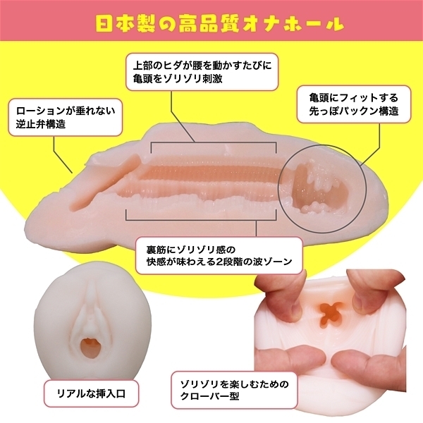 腰振りオナニーができる!!付属のパンツ型ホルダーでお好きな抱き枕やまくらにオナホールを固定して正常位みたいに腰振ってお楽しみいただけます。オナホール本体も腰振りオナニーに合わせてキツ過ぎず緩過ぎず、ある程度腰振りを楽しんだら好きなタイミングで射●できるような設計になっています。逆止弁構造でローションが漏れにくいので枕を汚す心配もなく安心して腰を振れます。オナホール重量:200g |