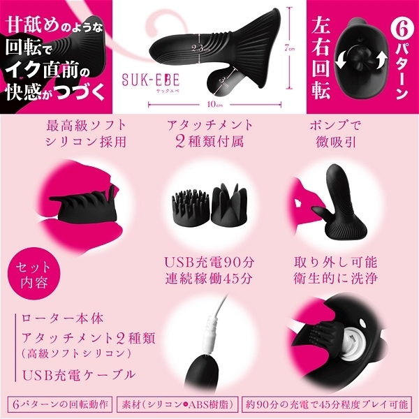 優しく舐めるから、イク直前の感覚がつづく。それが「ヤバ回転ローターNEBURINGUS−ネブリングス−」です。強い振動ばかりに慣れていると感度が鈍くなりませんか?今こそ優しくせつなく敏感な部分を「ねぶり」ましょう。敏感なアソコも胸もどちらもOK!!最初に使うときはお好みのアタッチメントを装着してからご使用ください。極限まで柔かくした高級シリコンブラシが優しく回転して刺激します。(薄めのローションをつけると滑りが良くなります)焦らされるような独特の感覚が、オーガズム直前のもどかしさを再現。左右回転6パターンで飽きさせません。優しさを演出するために敢えて「微」吸引ポンプも設置。ポンプのプッシュでもどかしい吸い付きが更なる焦らしを演出。しかも交換用アタッチメントつきで楽しさ2倍。【セット内容】ローター本体/アタッチメント(高級ソフトシリコン)/USB充電ケーブル。滑らかな感触をお求めの場合はローションをご利用ください。・6パターンの回転動作・約90分の充電で45分程度楽しめます●タイプB |