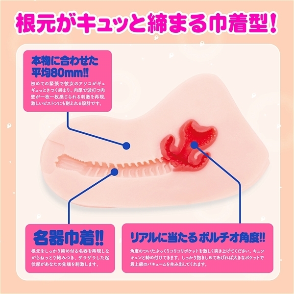 根元が締まる名器の感触をHON−MONOで再現しました!!本物に近づけた平均サイズ、GスポットとAスポット、リアルに当たるポルチオ角度、波打つ肉壁、素材もこだわった「ふんわり柔肌とろける生感触」、非貫通ホールならではのバキューム性能で吸い付き、柔らかくても根元をギュッと締め付け、ザラザラとした起伏部があなたの先端を刺激する名器ならではの刺激と感触で、キュンキュン締め付けてくれる彼女にたくさん可愛がってもらってください。直接肌に触れるものだから、国産素材&国内生産。検査番号:2302555