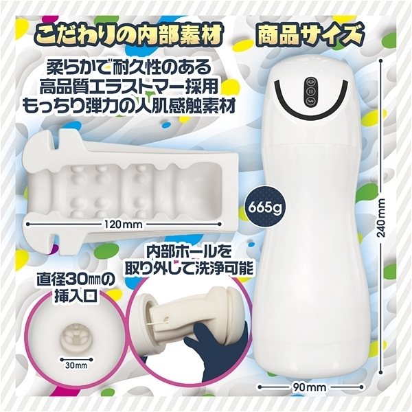 オナホールのバキュームとは全く違う。電動ポンプ並みの吸引が襲う!圧巻のバキューム体験!吸い込み過ぎてあそこがバキューン!の「SUIKOMIバキューン」の登場です。<電動ポンプの吸い込み力>×<振動>は吸い込みパターンの変化や振動パターンの変化で何度使っても新鮮な気持ちで楽しめます。いつでもプレイ(後処理ラクラク)が可能で場所(携帯可能)も問いません。手がベタつきにくい(直接触らない)。電動だから固定して、ボタン操作だけで自動で動きます。上下運動したり、捻じったり、傾けたり、回転させたり、擦りつけたり。深く入れたり、先端だけ刺激したり、フェラチオ耐性強化にも使えます。静穏設計。らくらく後処理。ロングプレイに最適です。<パーフェクトフェラチオマシーン>とでも言うべきなのか?是非ともお試しいただき、この吸い込み、この刺激を体験していただきたい。リラックス時間にどうぞお楽しみください。※ハマりすぎにはご注意ください。
