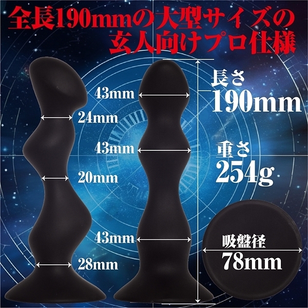 快感ボール内蔵の高品質シリコン製のアナルディルドの登場です。全長190mmの大型サイズで玄人向けのプロ仕様です。表面は高級シリコンのすべすべの肌触りで、内部には小刻みに動く「快感ボール」が3つ内蔵されており、運動時の小刻みな刺激で新感覚を味わえます。3段階のふくらみが圧迫感をしっかりと演出。圧倒的サイズ感で他の追随を許しません。アナル開発!前立腺開発!ドライオーガズム!パートナーと!外出のお供に!などいろいろな使い方が出来ます。特にお散歩は内部の快感ボールが振動し、新しい楽しみ方ができることでしょう。表面の高品質シリコンはすべすべの肌触りで気持ちよさを感じる質感になってます。強力吸盤の台座付きで床、壁などに貼り付けてハンズフリーで様々な楽しみを実現できます。 |
