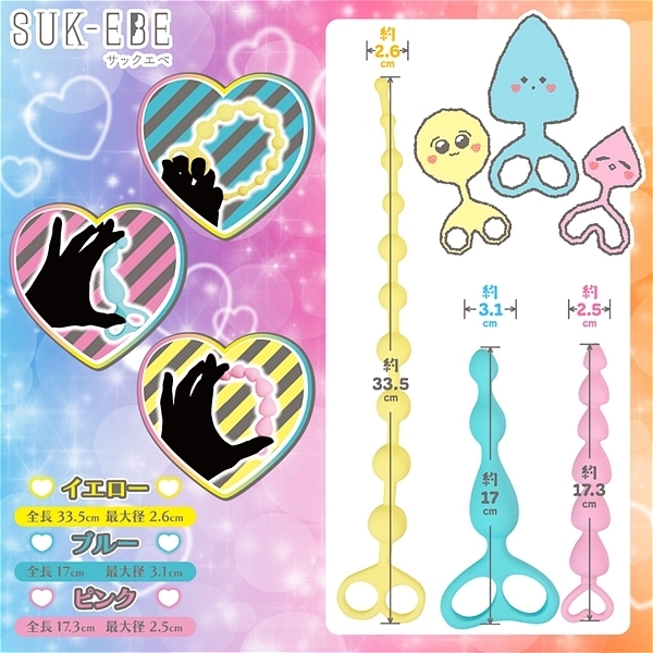 夢見る気持ちを忘れない人のための幻想的なアイテム。「いーとみー」が登場しました。内容物はプラグ3個セットとなっており、前作の「どりんくみー」と比べると少しだけ成長したサイズ感となりました。「いーとみー」は名前の通り可愛らしい見た目をモグモグと食べるように使います。色とりどりのキュートなデザインは、まるで夢の世界から抜け出したような幻想的な魅力を放ちます。一瞬であなたを童話の世界へと連れていくことでしょう。また使いやすいサイズと滑らかな最高級シリコン素材で作られており、快適で安心感のあるプレイが可能です。ベテランの方でも楽しむことができ、心地よい刺激に包まれることでしょう。ローションのような滑らかな液体を使用する事で、夢体験がより深まるのでオススメです。「いーとみー」は、あなたの日常を彩り可愛らしい幻想の世界を叶えるパートナーです。さぁ一緒に冒険を始めましょう。 |