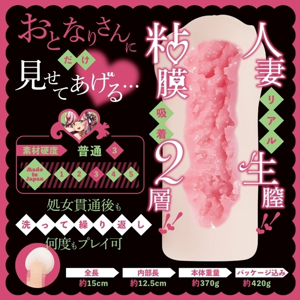 人気急上昇中の人妻Vtuber「夏芽みのり」が監修した、初の非貫通オナホ商品です。人妻でありながら処女という背徳感あふれる設定を忠実に再現し、驚きの処女膜ギミックを搭載!使用前には、優しく処女膜をいじり、膜が破ける瞬間をお楽しみください♪内部構造はリアルと妄想の絶妙なバランスで設計された2.5次元構造で、二層の粘膜感が驚くほどの生々しさを再現!非貫通タイプで、甘く優しいえっちタイムを存分にご堪能いただけます。 |