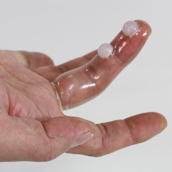 衛生的に不安があるシチェーションでも大丈夫!しっかり清潔をキープをしたまま、安心してフィンガーペッティングが楽しめるように開発された指用向サックです。様々な物に触れる指先は、キレイに見えても実はとっても不衛生なもの……!そんな指先でデリケートゾーンを触れるのは衛生的にNGです。こちらのG-2はシリコンボールの突起が2個付いた高刺激モデルです♪使いたい分だけ開封するタイプで、衛生的な1個ずつの個包装。清潔で安心できる完全殺菌仕様♪違和感を感じさせない薄さ0.06ミリで、指はもちろん、ローターなどにもご使用いただけます。 |